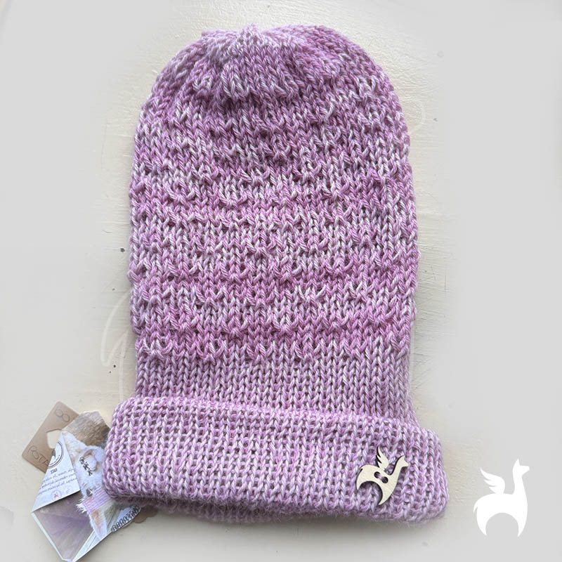 The beanie has a double layer. Alpaca wool is known to be very warm, hypoallergic and anti-bacterial.